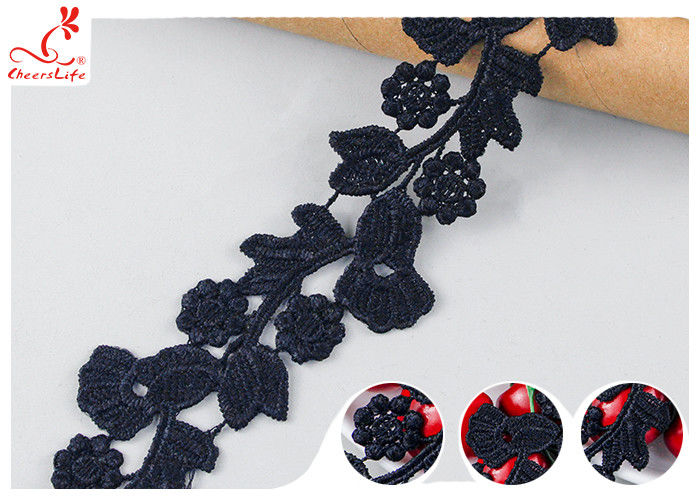 높은 색상 튼튼성 검은색 꽃 수직 蕾丝 트림 수분 용해성 통해 지속적인 색상을 보여줍니다, 의류에 적합합니다공장 대량 생산.