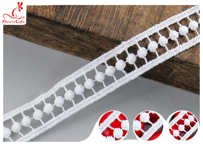 2cm 흰색 쥬피어 embroidered lace trim with poly milk 실크 패스 OEKO TEX 100는 지속적인 색상을 보여줍니다, 의류에 적합합니다.공장 대량 생산.