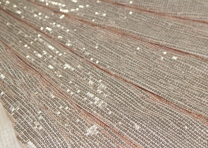 | 높은 색상 견뢰도를 가진 정장 드레스를 위한 샴페인 골드 플랫 샤인 시퀸 원단 (독특한 기술) | 웨딩 및 파티 드레스에 적합한 드레이핑성이 좋은 샴페인 골드 플랫 샤인 시퀸 원단 |